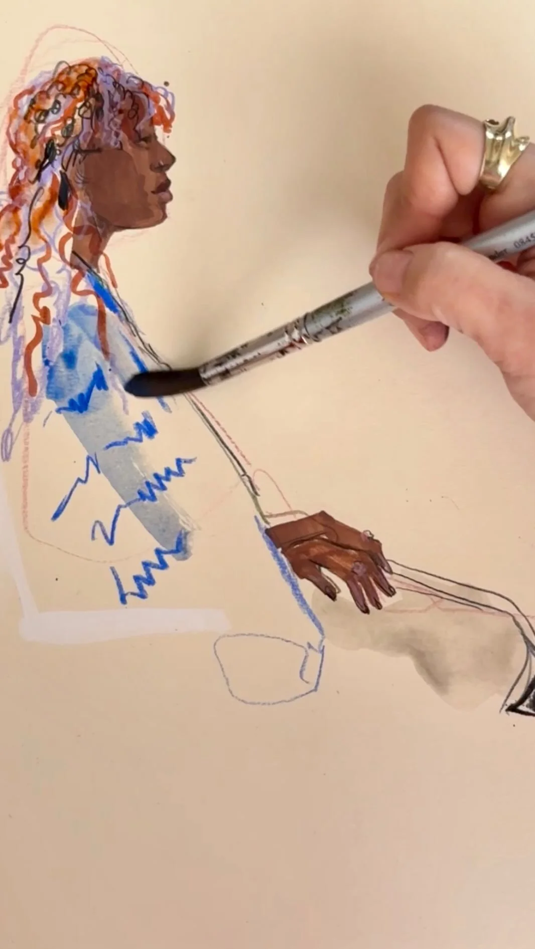 Illustrating guests in 10 minutes using a mix of coloured pencils and gouache!