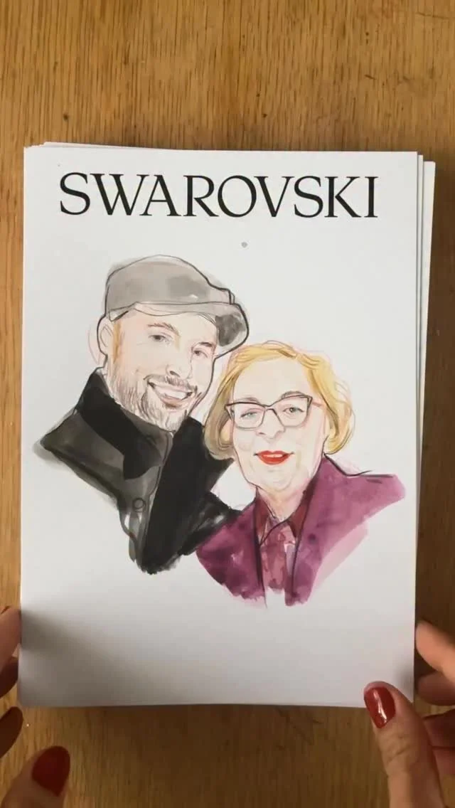 Illustrating guests in 15-20 minutes using a mix of coloured pencils and gouache. These are done in the studio this time!